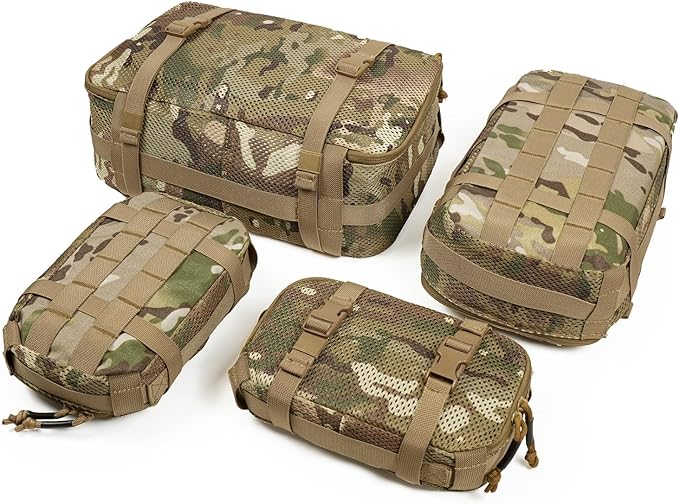 - MULTIPURPOSE TACTICAL POUCHES:it can used as a home organizer, wardrobe storage assistant, or install it on tactical panels, tactical backpacks, Molle vests, car seats, trunk, etc. It can hold: clothes, towels, shoes, raincoat, Picnic Mats, Warm Clothing, Sheets, Floor Mats, Gloves, Medical Supplies, First Aid Supplies, etc. and other accessories.