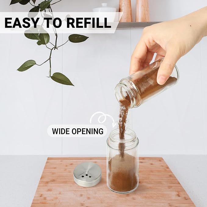 - Multi-Purpose Spice Bottles for a Variety of Seasonings: Our spice jars are designed to be versatile and accommodate different types of seasonings. Whether you're storing salt, pepper, herbs, cumin powder, or other spices, these multi-purpose jars can effortlessly hold and dispense different seasoning options. Simplify your kitchen organization with a single jar that suits a wide range of spices.