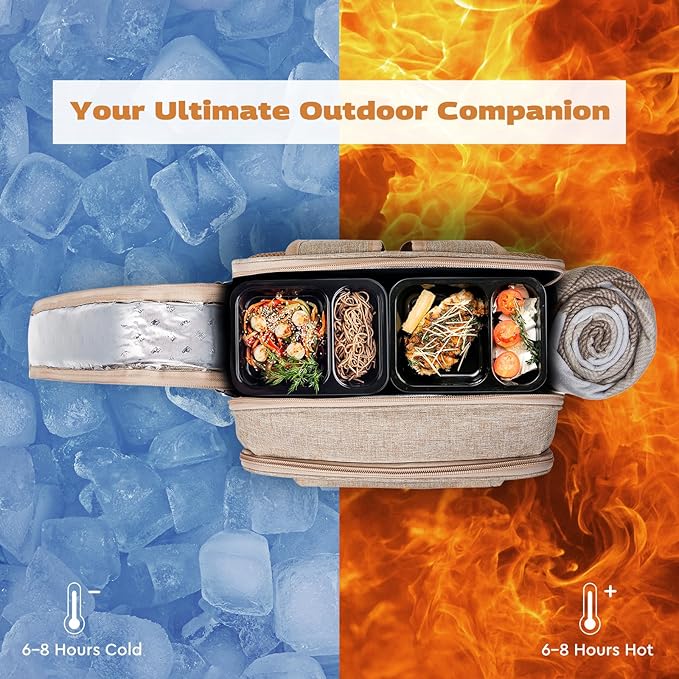 - LARGE CAPACITY & WELL EQUIPPED: Size: 12(L)x7.5(W)x16(H) inches, 5.3 lb; The 24L high-capacity picnic backpack big enough to accommodate the ingredients needed for a picnic. Includes a full set of meal preparation tools, thickened waterproof picnic mat, wine bag, and we exclusive gift internal detachable waterproof preservation layer. The bag is made of 600D Oxford fabric and 5mm PE foam and PU layer, which can keep the hot/cold/fresh for hours.
