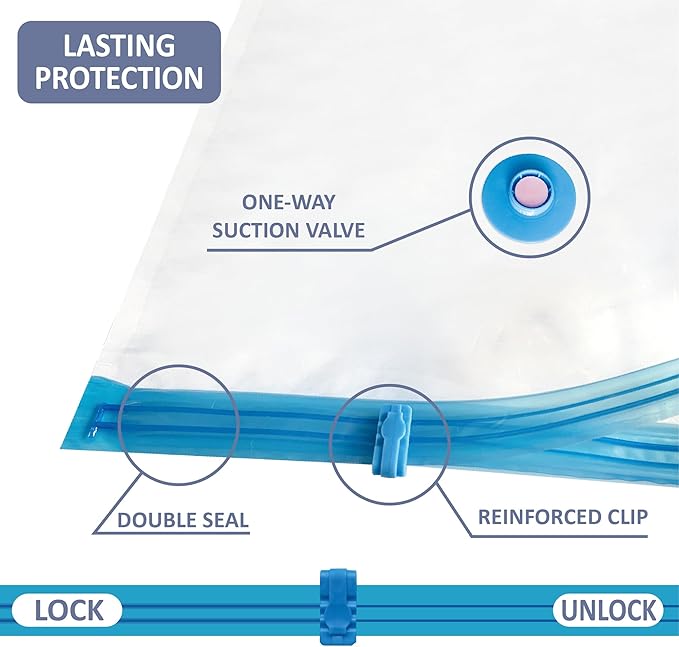 - Exceptional Compression: Our jumbo space saver bags compress items by 80% of the original volume; You can fit in loads of items even in tight spots; Say hello to a clutter-free, well-organized home effortlessly