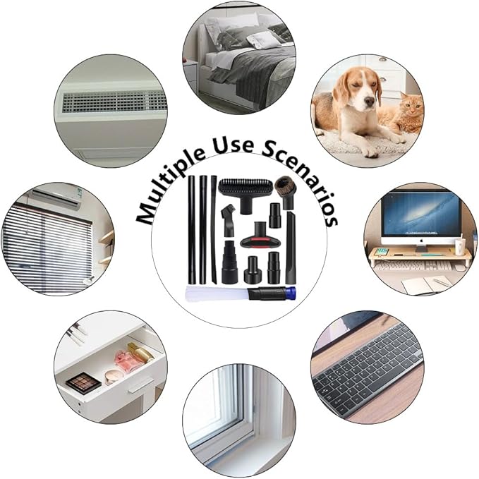 - 【Wide Application】These vacuum attachments can be used to clean a variety of surfaces and spaces, including desks, floors, cars, sofas, keyboards, carpets, vents, blinds, or pet hair, and can reach into tight spaces and corners. Help keep your home clean and tidy.