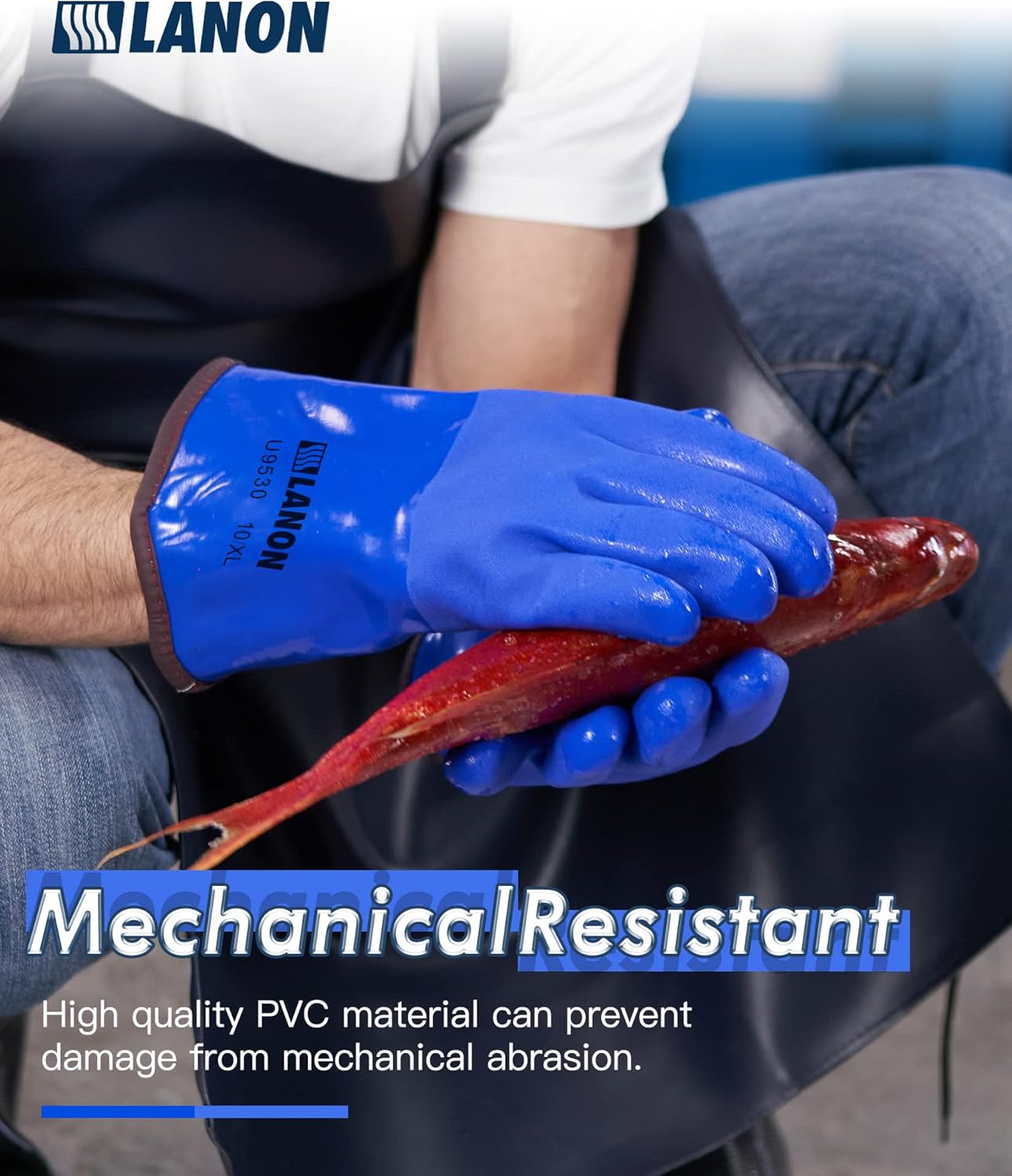 LANON PVC Coated Cold Proof Heavy Duty Gloves, Waterproof Warm Work Gloves for Freezer Work, Chemical & Oil Resistant, Non-Slip, Large