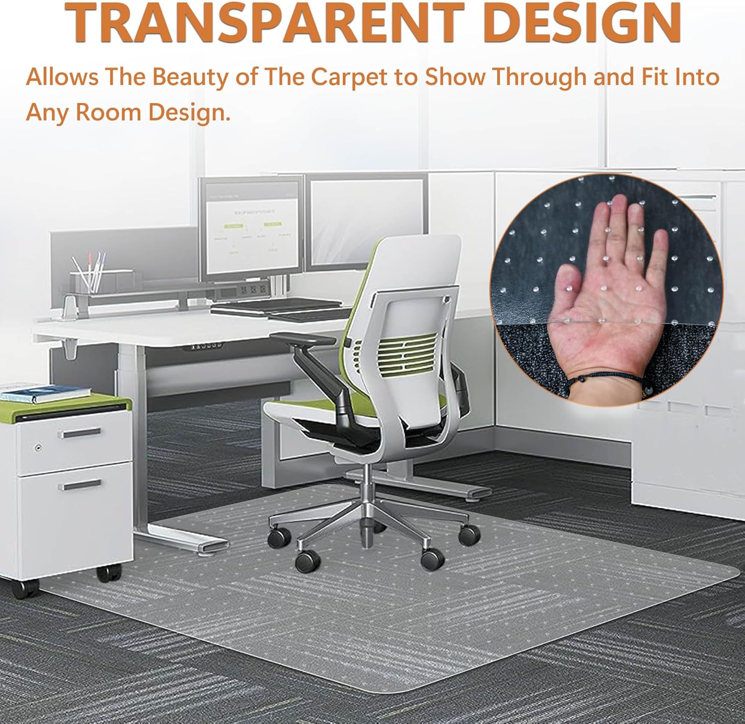 - 【Ultimate Grip & Carpet Protection】 Our Chair mat for Carpet Features exclusive grip studs on the underside that firmly anchor into your carpet pile. This innovative design prevents unwanted shifting and curling, providing a stable base that effectively shields your expensive carpet from unsightly roller chair indentations, wheel marks, and daily wear and tear