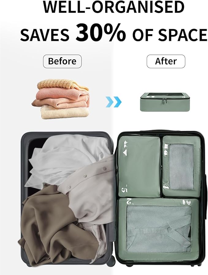 - 【Easily identifiable number and Machine wash】: The number setting is convenient for family members to distinguish their luggage in holiday trips. The simple ICON design can prompt us to put in the corresponding clothes. Unlike traditional packing cubes to be hand wash, our packing bags are machine washable.