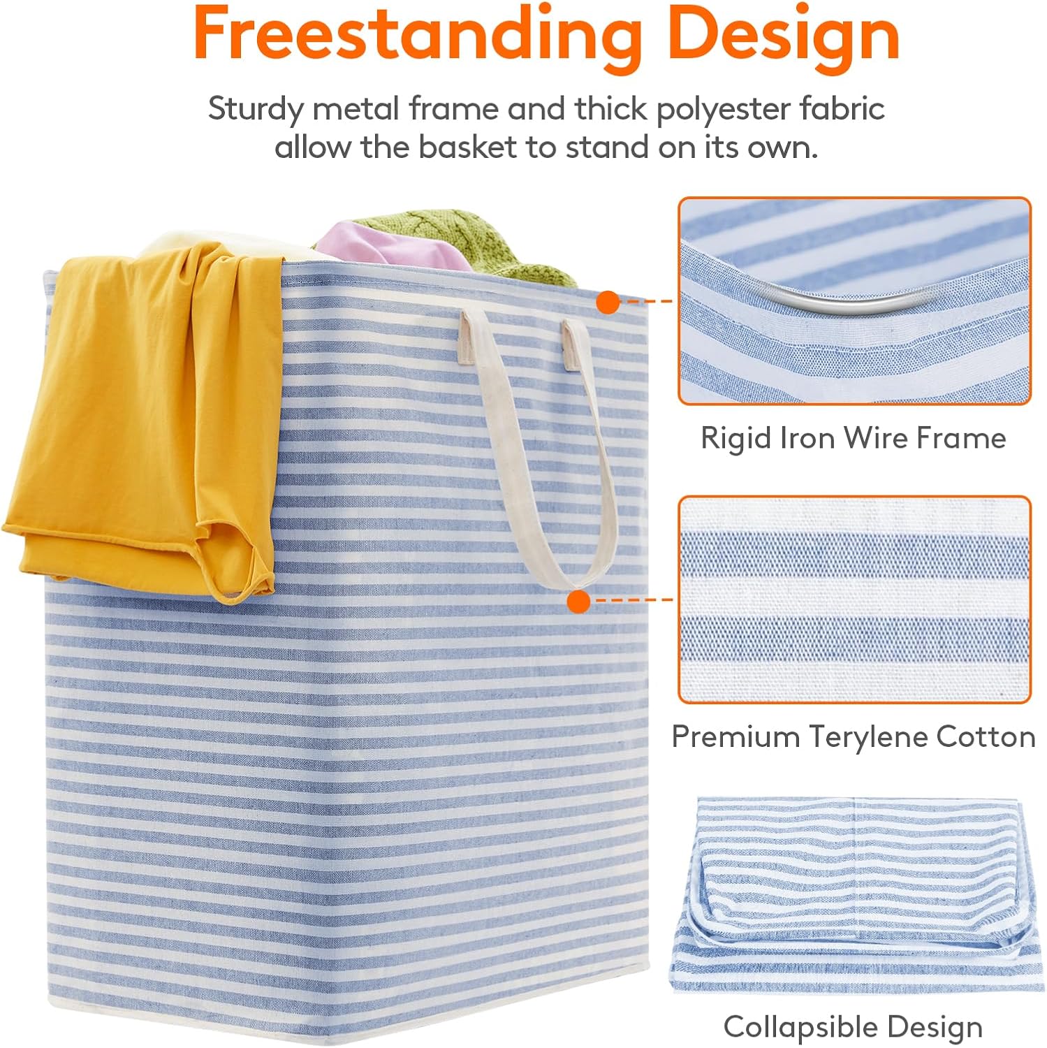 Lifewit Laundry Hamper Large Collapsible Laundry Basket, Freestanding Waterproof Clothes Hamper Storage with Easy Carry Handles for Clothes in Bedroom Bathroom College Dorm for Adults, Blue, 100L