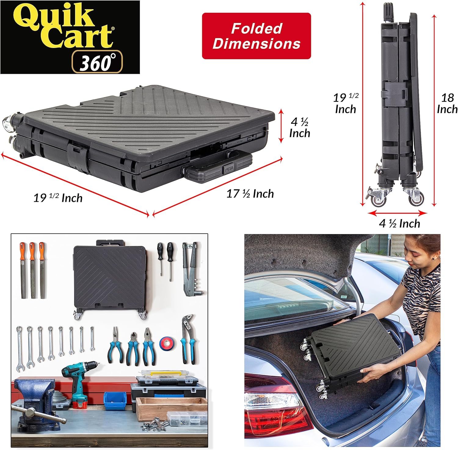 dbest products Quik Cart 360 Four Wheeled Rolling Crate Teacher Utility with seat Heavy Duty Collapsible Basket with Handle, Black