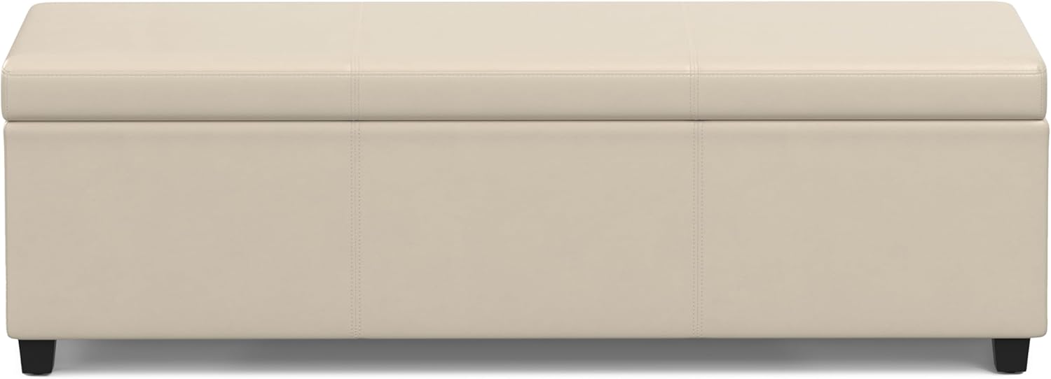 SIMPLIHOME Avalon 54 inch Wide Contemporary Rectangle Extra Large Storage Ottoman Bench in Satin Cream PU Faux Leather, Assembled, for The Living Room, Entryway and Family Room