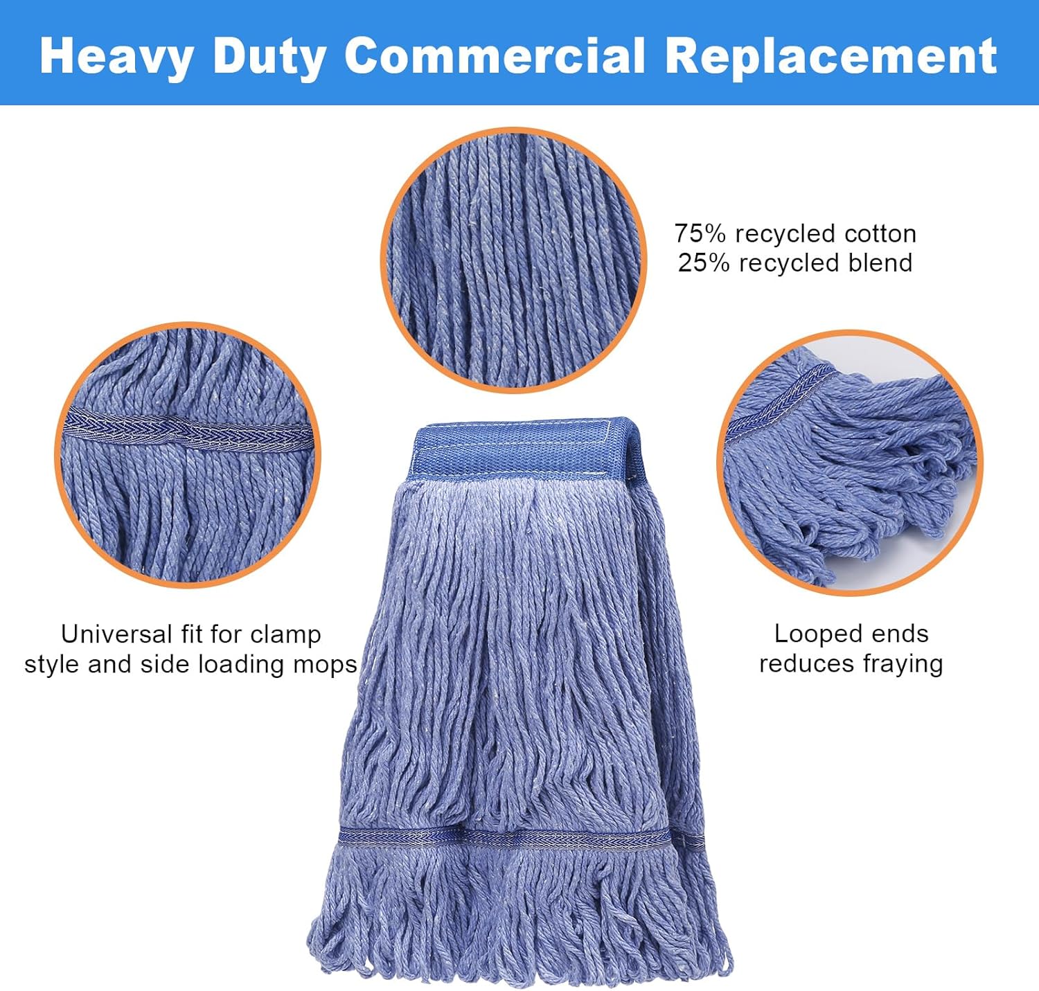 2 Pack Mop Head Replacement, Cleaning Heavy Duty Mop Head Commercial Replacement, Wet Industrial Blue Cotton Looped End String Head Refills, Wet Refills Head Optimal Absorption and Durability (Blue)