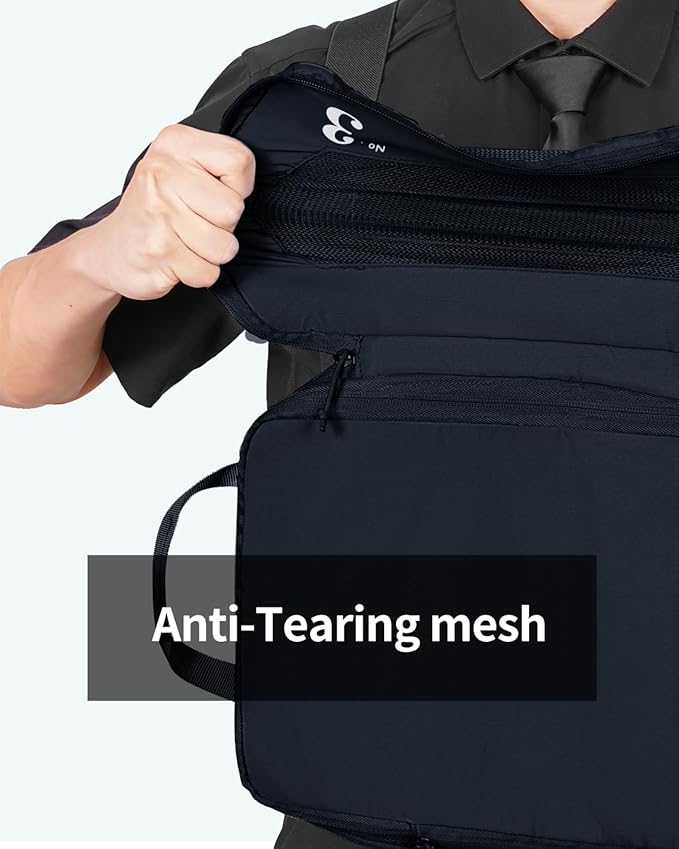 - 【Compression Design Save More Space】: ECOHUB compressible packing cubes come with an extra zippered section for content compression. Comprssion zippers allow 10cm expansion. Unzip the compressed part, then have room to expand and add more items later. Compression design saves you space inside your luggage by pressing the air out of mesh and zipping up. Adjust and maximize your packing space while keeping your items easily accessed.(PATENT PENDING)