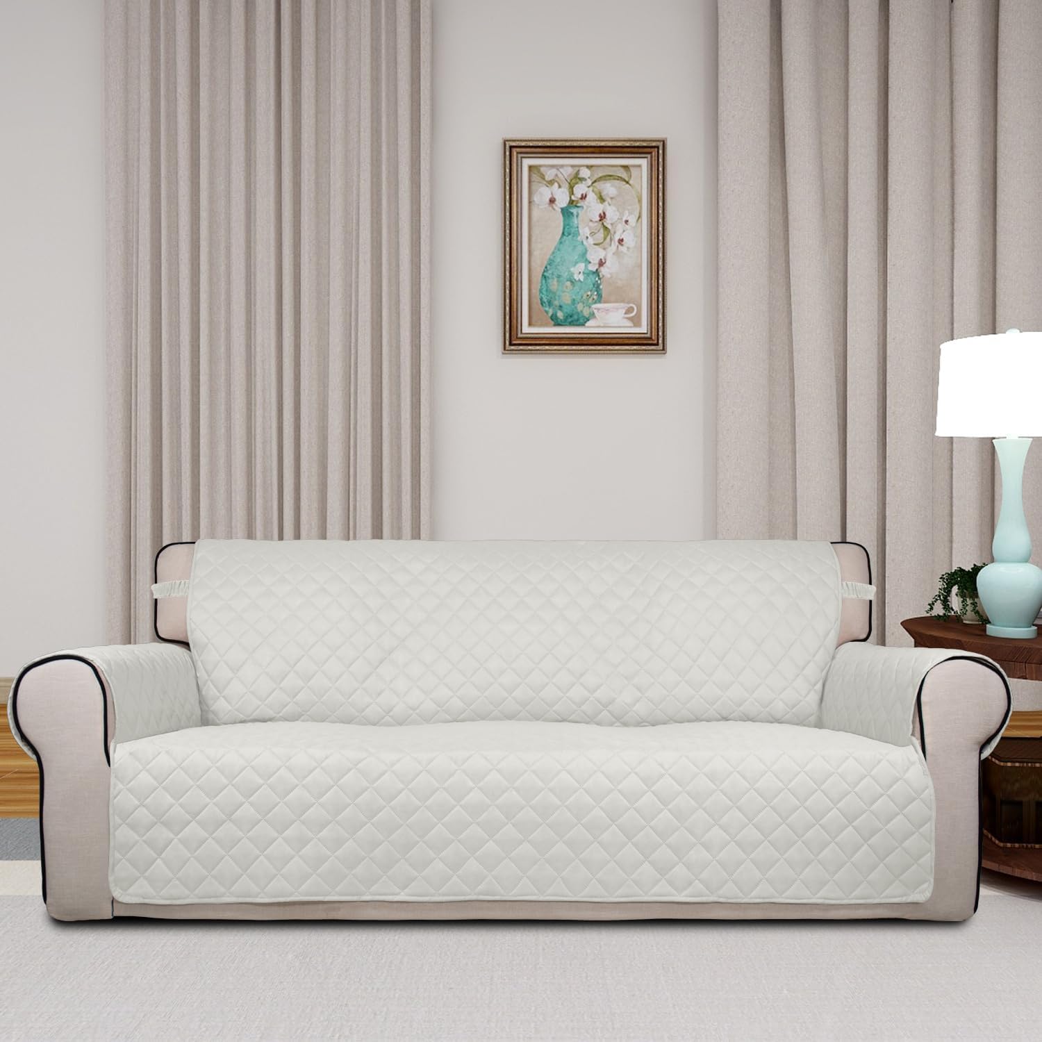 PureFit Reversible Quilted Sofa Cover, Water Resistant Slipcover Furniture Protector, Washable Couch Cover with Non Slip and Elastic Straps for Kids, Pets (Oversized Sofa, Ivory/Ivory)