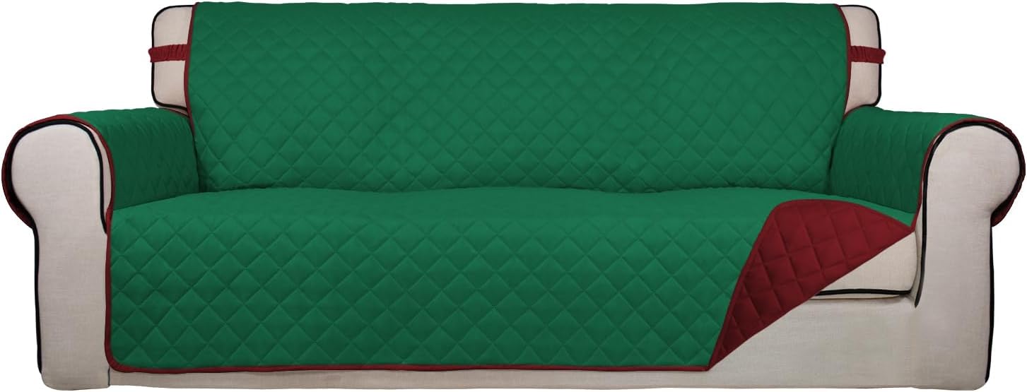 PureFit Reversible Quilted Sofa Cover, Water Resistant Slipcover Furniture Protector, Washable Couch Cover with Non Slip and Elastic Straps for Kids, Pets (Oversized Sofa, Green/Red)