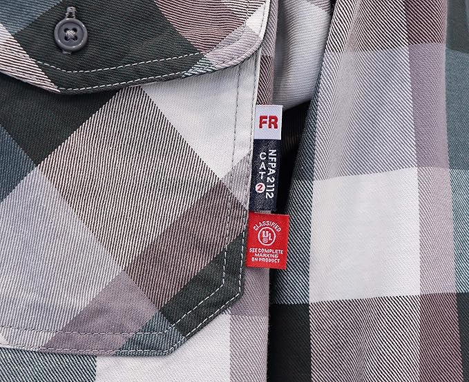 - FR MATRIALS LIGHT WEIGHT:6.25OZ Cotton Twill FR Treated,FR Buttons,FR Sewing Threads!Clear FR Tag on arms and bottom front.More FR info On Neck Tag About UL Certification.We Attached A Small Sample Inside Package For Cunstomers Simple FR Try