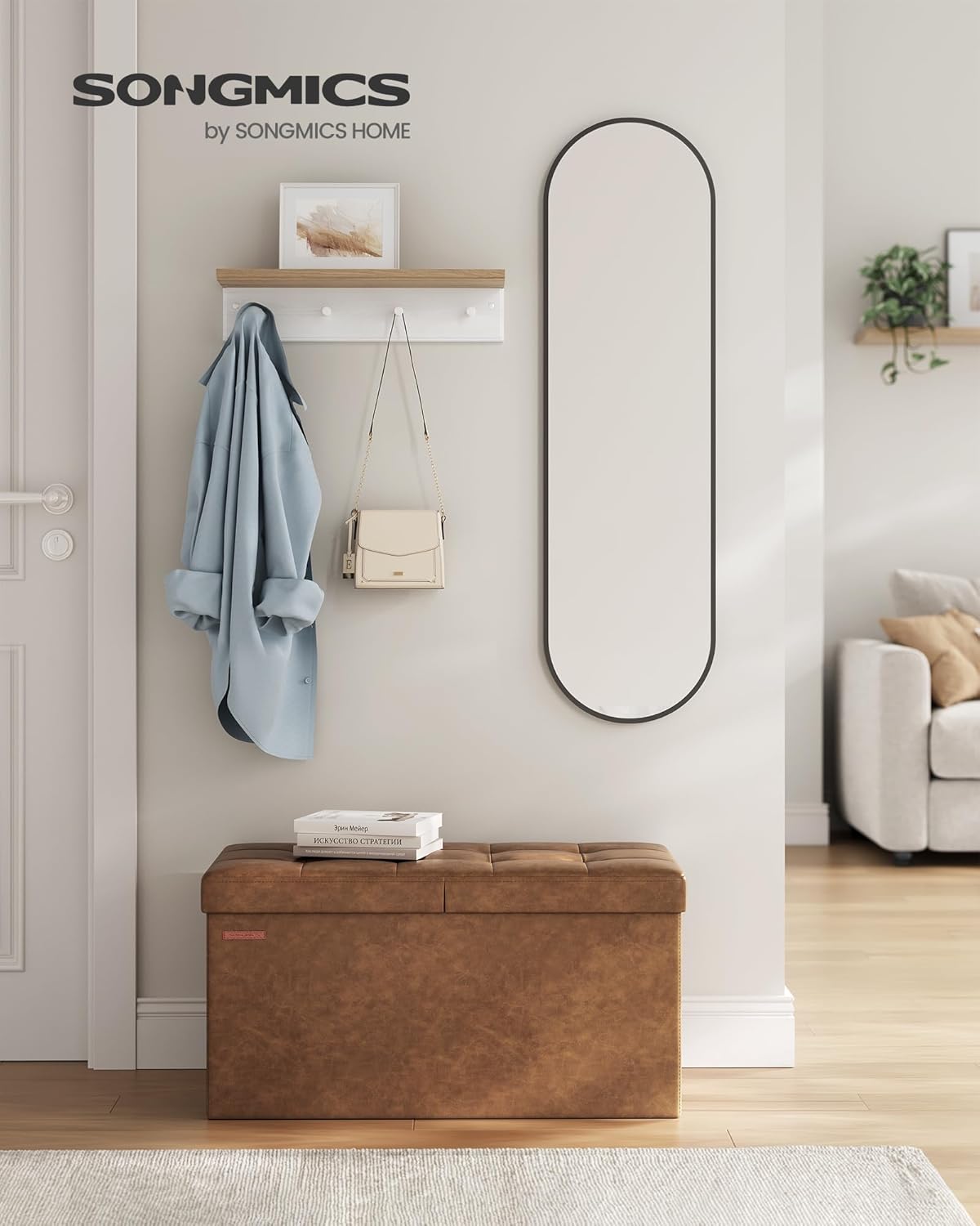 SONGMICS MAZIE Collection - 30 Inches Storage Ottoman Bench with Flipping Lid, Storage Chest Footstool, Load 660 lb, for Entryway, Living Room, Bedroom, Synthetic Leather, Coffee Brown ULSF045K01