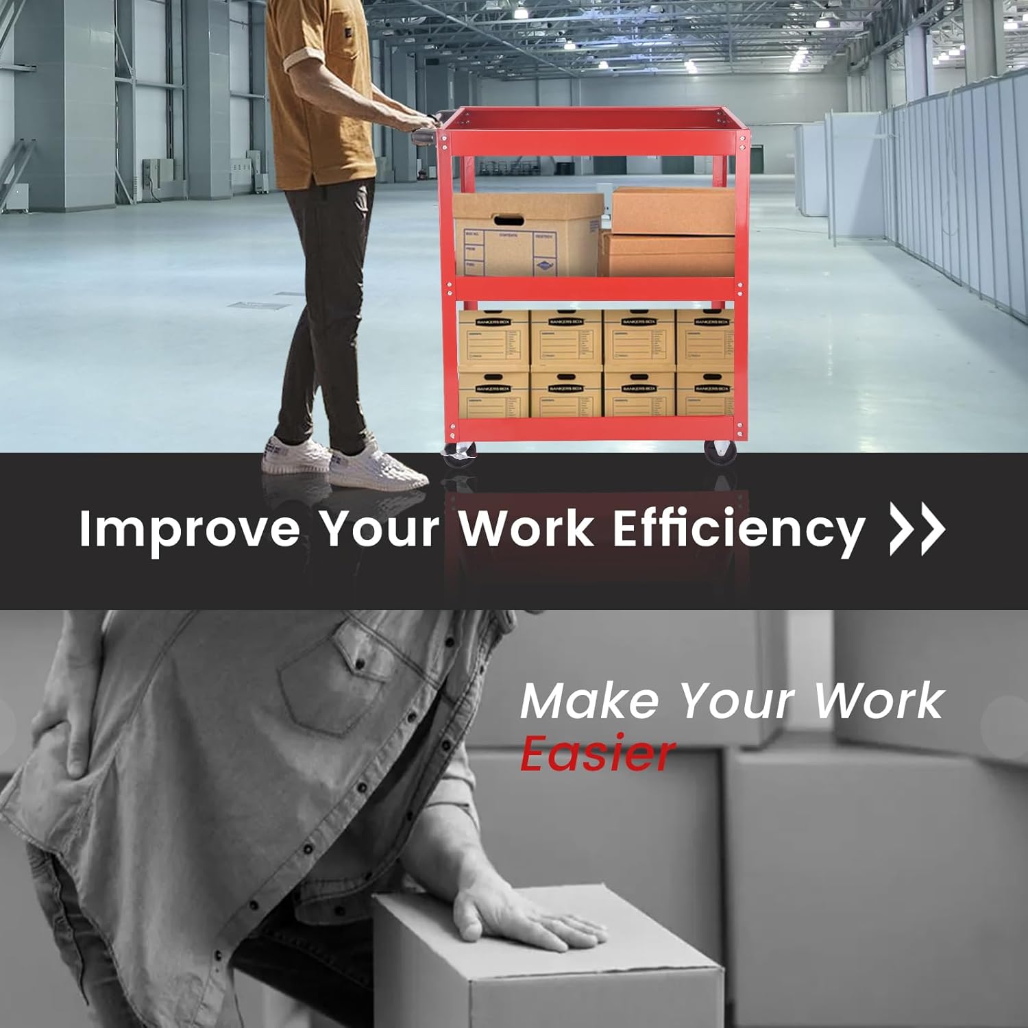 - 【Sturdy & Durable Construction】Adopting sturdy steel construction, 3-Tier Commercial our utility carts are made of 1.2mm galvanized sheet and heavy-duty steel with a premium paint coating to prevent flaking. It is noted for it’s durable and sturdy characteristic. So the durable shelves won't rust or dent easily, and can be a great addition to your work area. And this tool cart has high load-bearing capacity which can hold up to 110 lbs each tier.