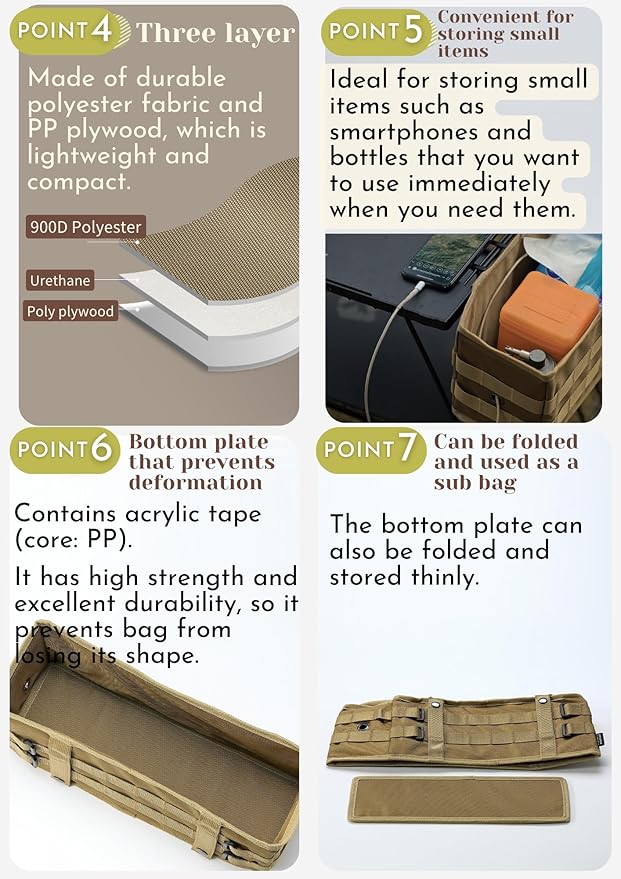 - 【High Quality Material】Made of durable polyester fabric and PP plywood, which is lightweight and compact. Contains acrylic tape (core: PP). It has high strength and excellent durability, so it prevents bag from losing its shape.