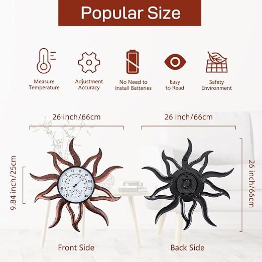 - Widely Used: The 26-inch decorative outdoor thermometer can fill an empty room well and make the room change to vintage elegance. The temperature and humidity integration function can automatically monitor weather conditions, and bring a comfortable experience to life. Christmas Day, Mother's Day, birthdays, and other festivals give it as a gift to the elders, it will be a surprising gift.