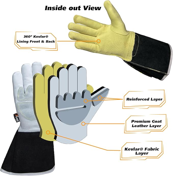 - Kevlar Reinforcement:XPRO Si6 Series 3NLPRC6 Crafted from premium goat leather with Kevlar lining, these gloves offer unparalleled abrasion, puncture, and cut resistance. Perfect for welders, these gloves enhance durability and protection during tig, mig, and stick welding.