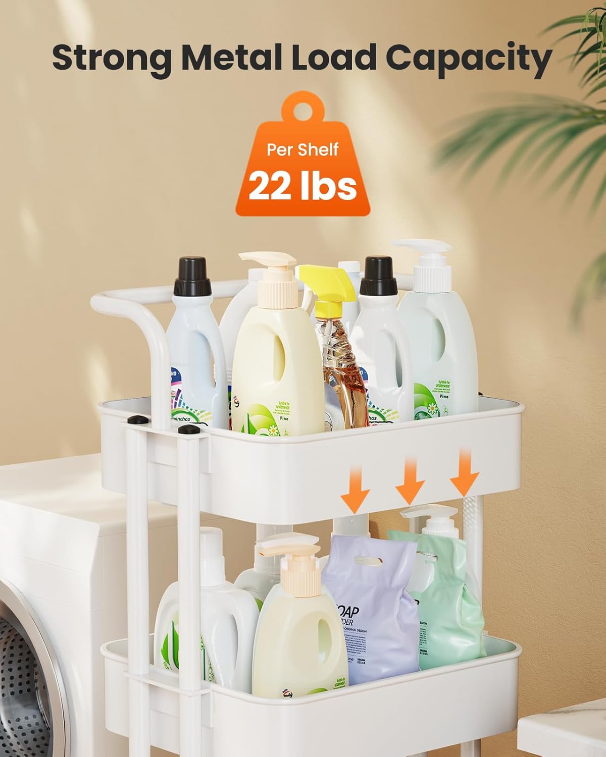 - Spacious Storage Capacity: This utility cart provides 4-tier large storage space while saving you floor space to optimize space utilization. Deep baskets are designed for preventing items from dropping. Per shelf weight capacity of up to 22lbs.