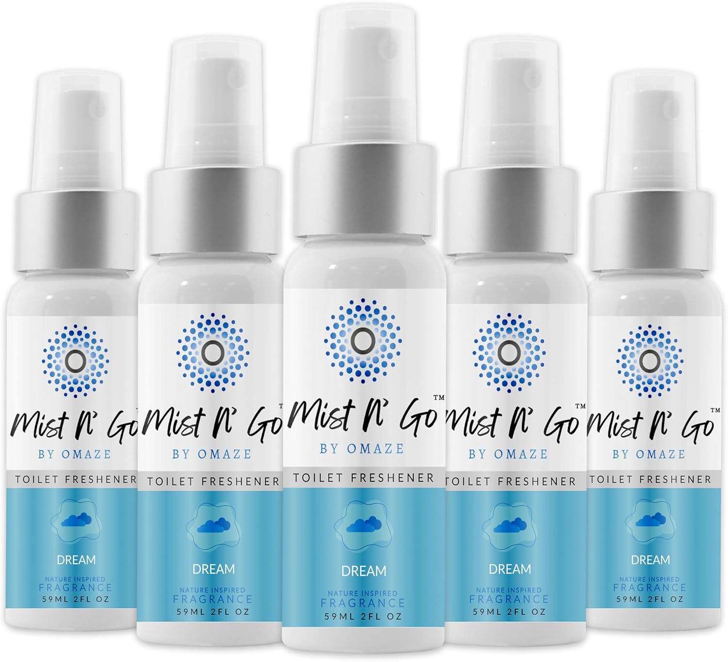 Mist N’ Go by Omaze Travel Bathroom Spray for Toilet Spray Odor Eliminator - Travel Toilet Spray for Bathroom Air Freshener Spray for Bathroom Deodorizer - Dream Regular Size (2oz x5)