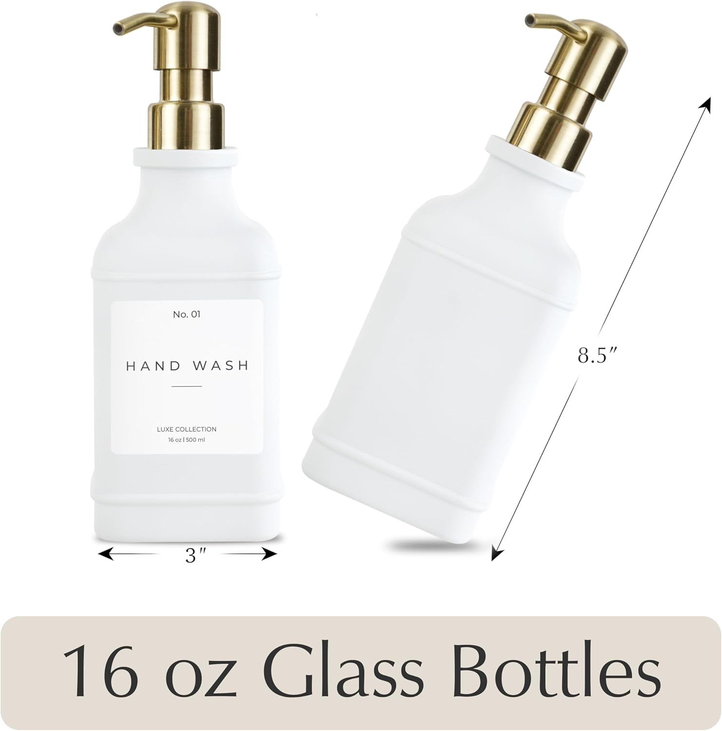 Emerson Essentials Soap Dispenser, Dish Soap Dispenser, Soap Dispenser Bathroom Set, Hand Soap, Kitchen Soap Dispenser Set, Glass Soap Dispenser with Pump and Labels | 16 Oz, 2-Pack