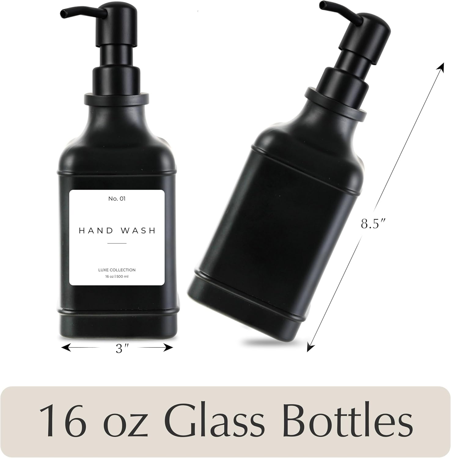- β PREMIUM QUALITY THAT LASTS β Designed to complement any space, these 16 oz glass soap dispensers are perfect for hand soap, dish soap, lotion, or shampoo. Ideal for sinks in your kitchen, bathroom, laundry room, or guest bath. Unlike dispensers that peel or break down, our bottles are made from thick, durable glass that resists wear and looks elegant on any countertop.