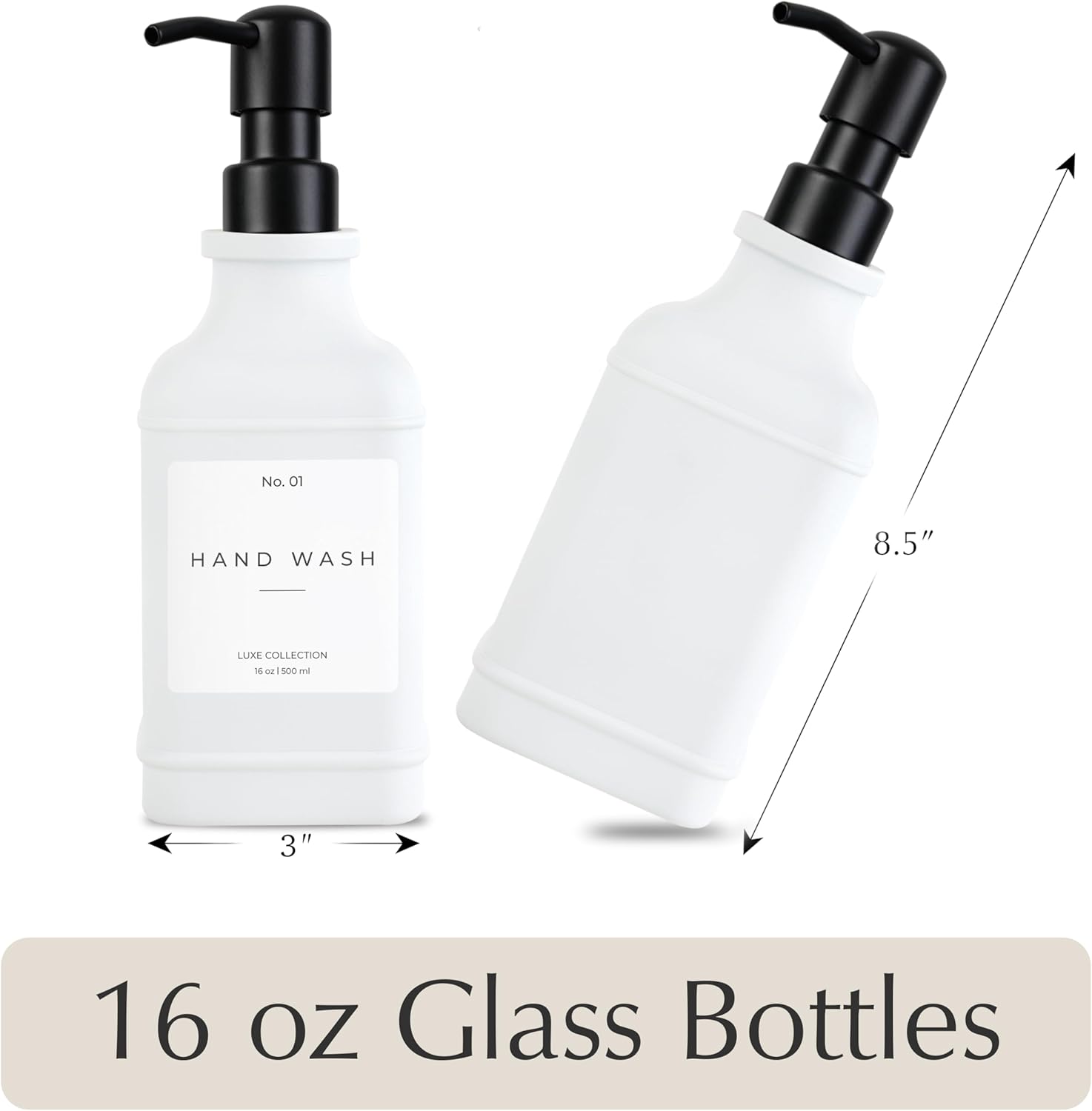 - ✅ PREMIUM QUALITY THAT LASTS – Designed to complement any space, these 16 oz glass soap dispensers are perfect for hand soap, dish soap, lotion, or shampoo. Ideal for sinks in your kitchen, bathroom, laundry room, or guest bath. Unlike dispensers that peel or break down, our bottles are made from thick, durable glass that resists wear and looks elegant on any countertop.