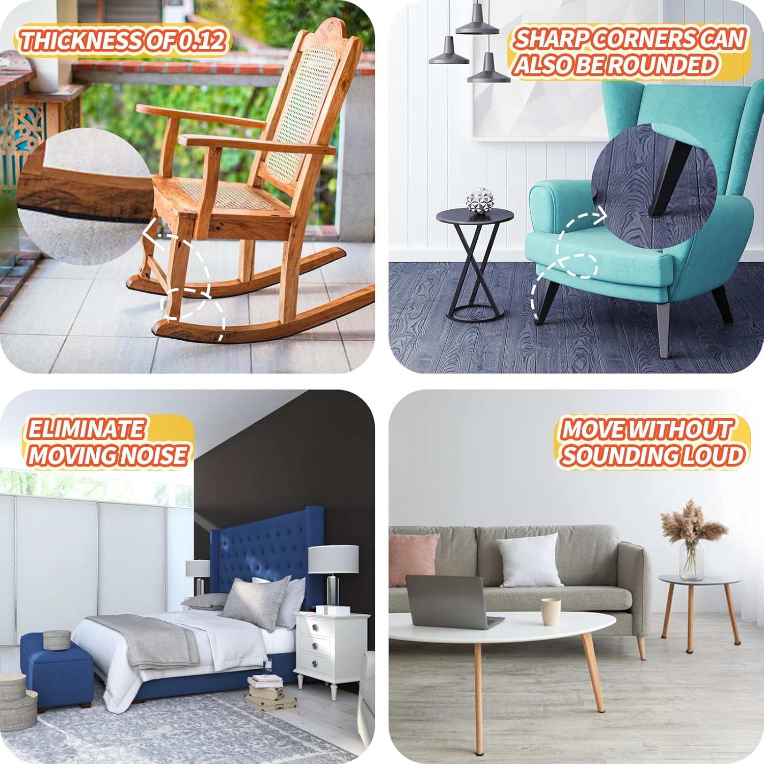 - WIDE APPLICATIONS - Suitable for tile, laminate, hardwood, carpet and any type of floor to prevent floor damage with furniture fixed. It also applies to any furniture and appliances, including chairs, sofas, cabinets, drawers, doors, laptops, keyboards, electronic devices, vases, etc