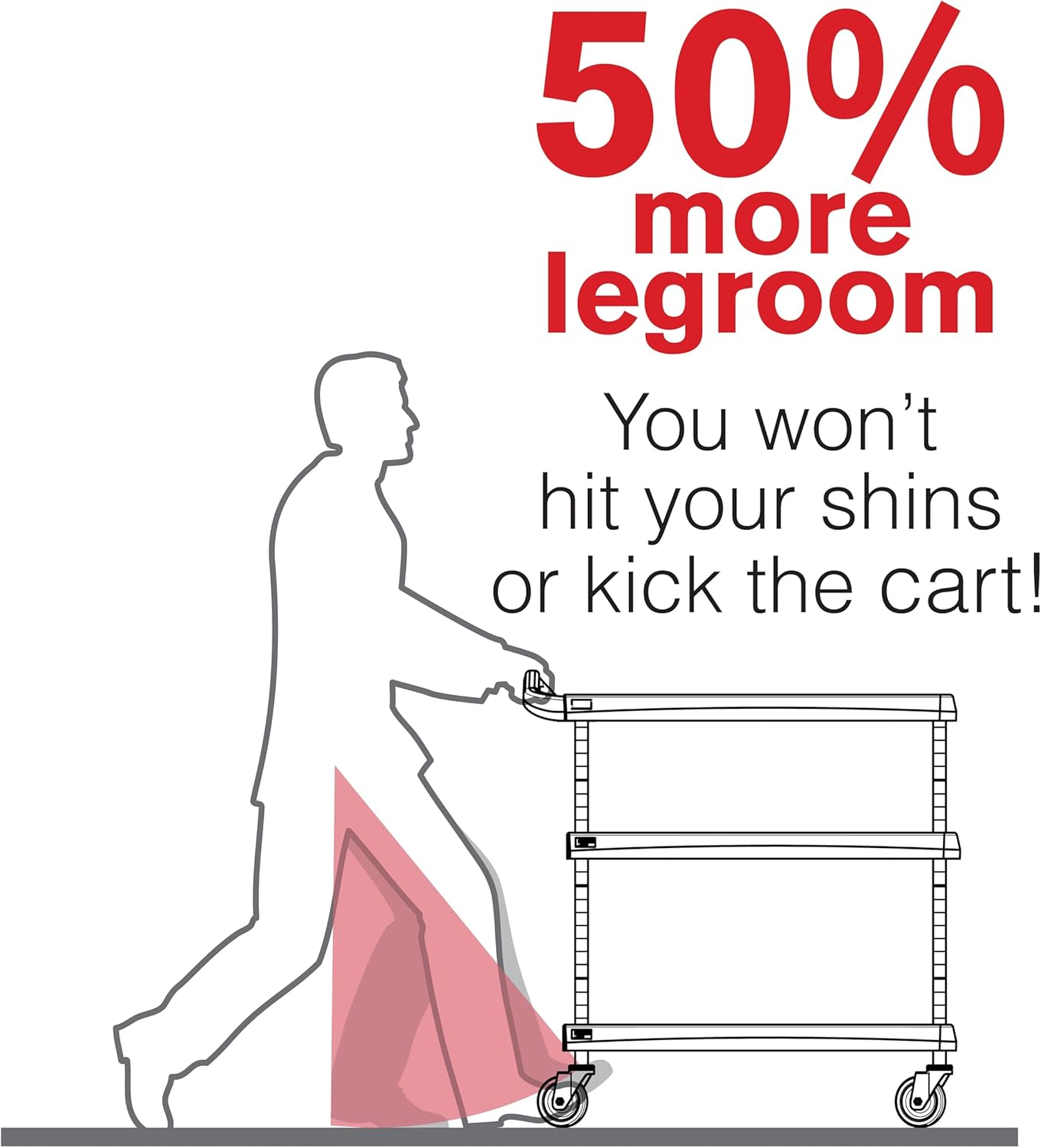 - Ergonomic and Easy to Maneuver: With five height options for the top shelf, the handle can be positioned at an ergonomic placement for users of all heights. This large utility cart has four non-marking swivel casters for easy mobility even in tight spaces and 50% more legroom to reduce tripping and painful shin bumps. Our roll cart comes in 2 and 3-tier carts with wheels to offer a good balance of storage space, capacity, and maneuverability.