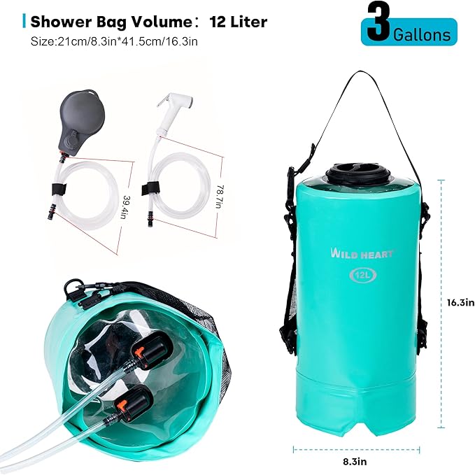 WILD HEART Camping Shower 22L/ 12L Portable Shower for Camping with Pressure Foot Pump and Hose - Solar Shower Bag Backpack for Camping, Road Trip & Outdoor Use