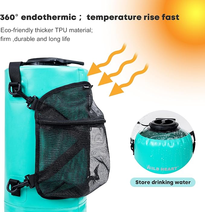 - The shower bag is made of waterproof material TPU through high-frequency voltage technology, which is more durable and can hold drinking water.