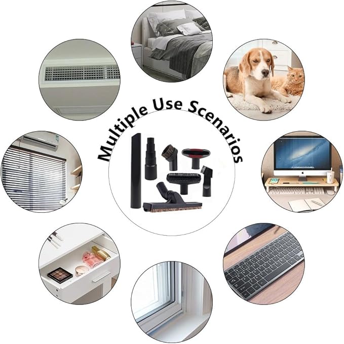 - 【Wide Application】These vacuum acccessories can be used to clean a variety of surfaces and spaces, including desks, floors, cars, sofas, keyboards, carpets, vents, blinds, or pet hair, and can reach into tight spaces and corners. Help keep your home clean and tidy.