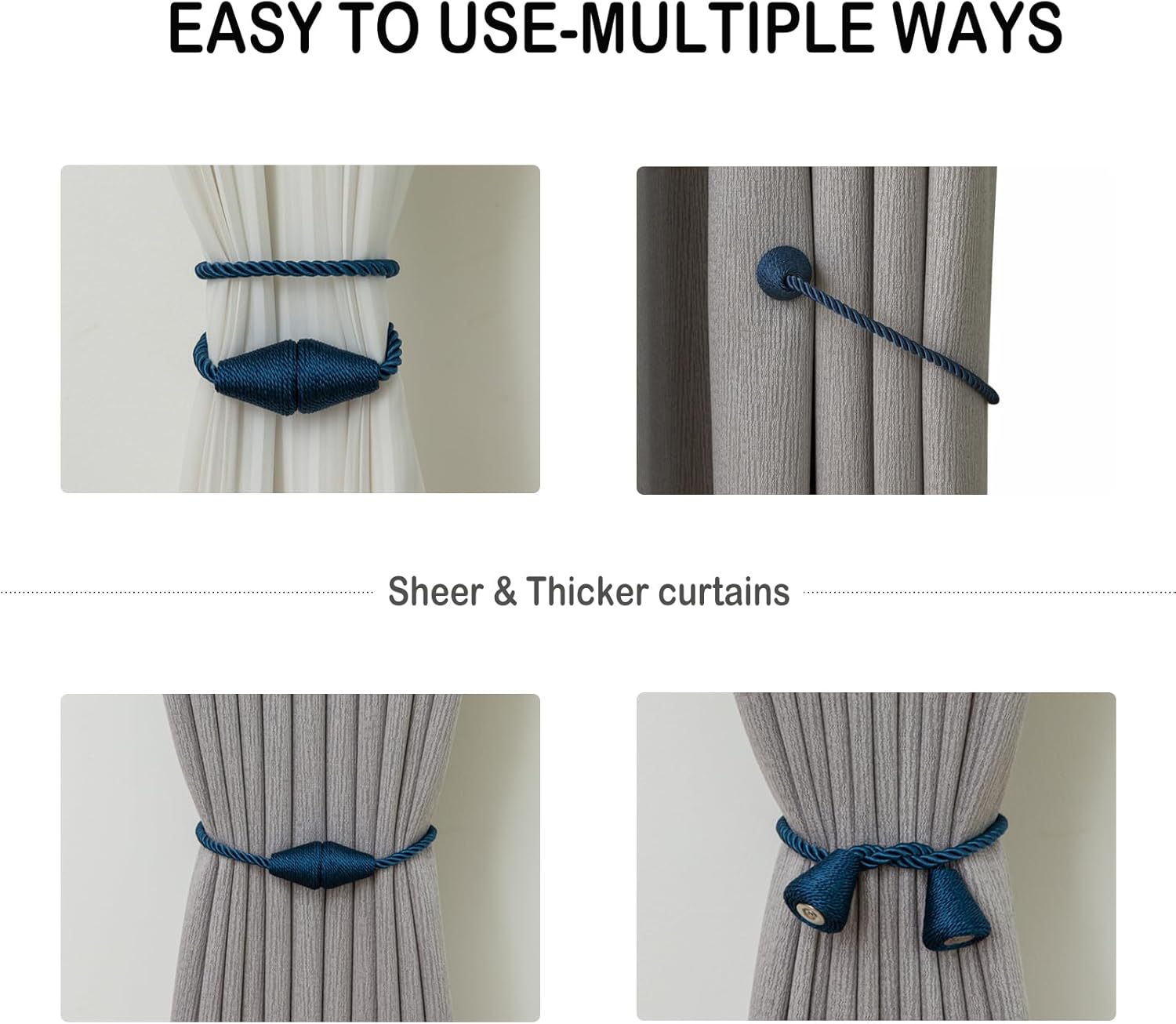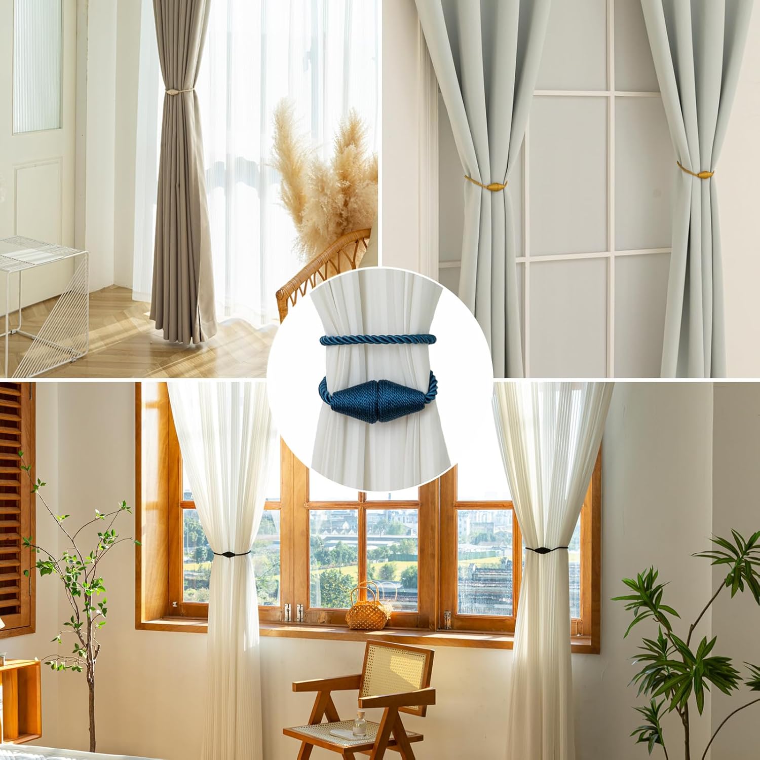 Magnetic Curtain Tiebacks 4 Pack Outdoor Rope Curtain Tie Backs Decorative Window Treatment Holdbacks for Home Decorative Curtain, Blue
