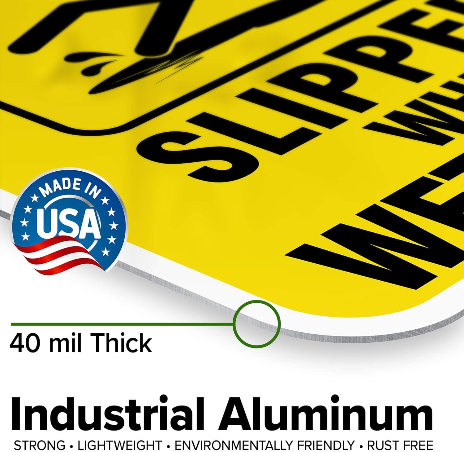Caution Slippery When Wet Sign or ICY Sign, 12"x16"0.40 Aluminum, Fade Resistance, Indoor/Outdoor Use, USA MADE By My Sign Center