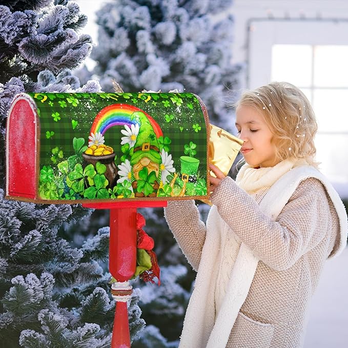 St. Patrick's Day Green Gnome Magnetic Mailbox Covers - Standard Size 21x18 Inch for Home, Outdoor, Garden