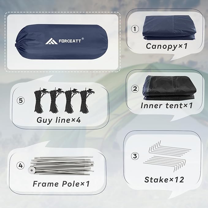 Forceatt Camping Tent 2/3/4 Person, Professional Waterproof & Windproof Lightweight Backpacking Tent Suitable for Outdoor,Hiking,Camping, Mountaineering and Travel