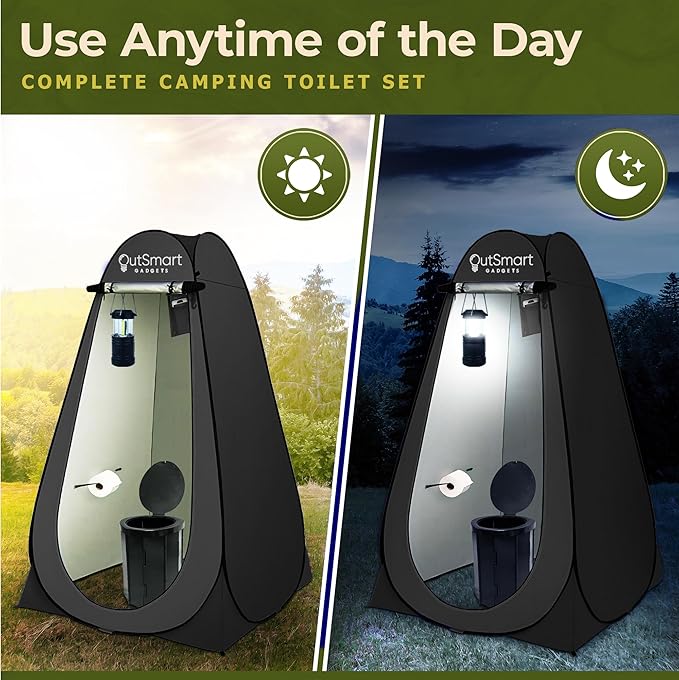- 【AM and PM Usage】With an expandable LED lantern with adjustable light settings, easily use the toilet and the pop up tent any time of day. With the portable camping light, turn the privacy tent into a makeshift bathroom, changing room, or outdoor shower space day or night.