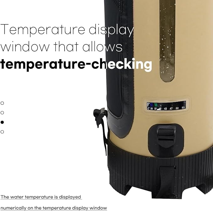 - 🏆【Temperature Display Window】Monitor water temperature with ease using the built-in display window on our shower bag for camping, perfect for outdoor activities like camping, beach showers, and more.