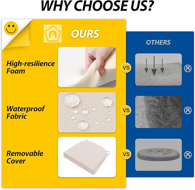 - Wide Use & Tips: These outdoor dining chair cushions fit pools, patios, balconies, decks, backyards, and gazebos. Foam inserts and covers are packed separately in bags and placed in one box—check all parts. Easy assembly required