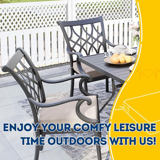- Wide Use & Tips: These outdoor dining chair cushions fit pools, patios, balconies, decks, backyards, and gazebos. Foam inserts and covers are packed separately in bags and placed in one box—check all parts. Easy assembly required