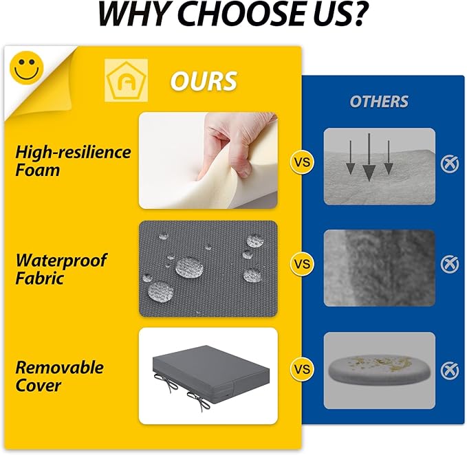 - Upgraded Cushion Foam: Thick, powder-free, high-resilience foam quickly regains shape after use, providing soft support and lasting comfort. It helps relieve pressure, enhances relaxation, and increases durability for long-term performance