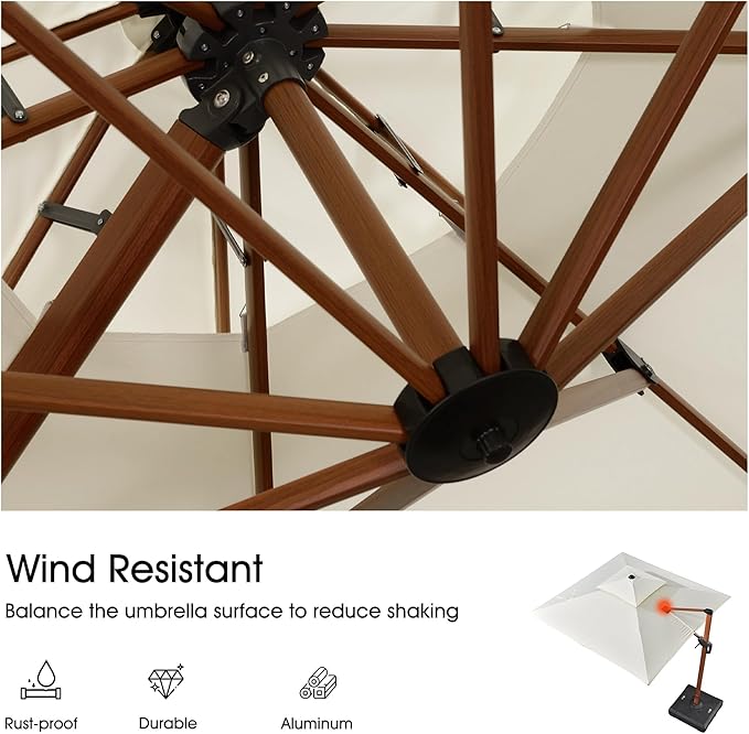 - Balanced wind design: Featuring a double-top design, the umbrella allows for ventilation underneath and can control wind direction to stabilize the canopy