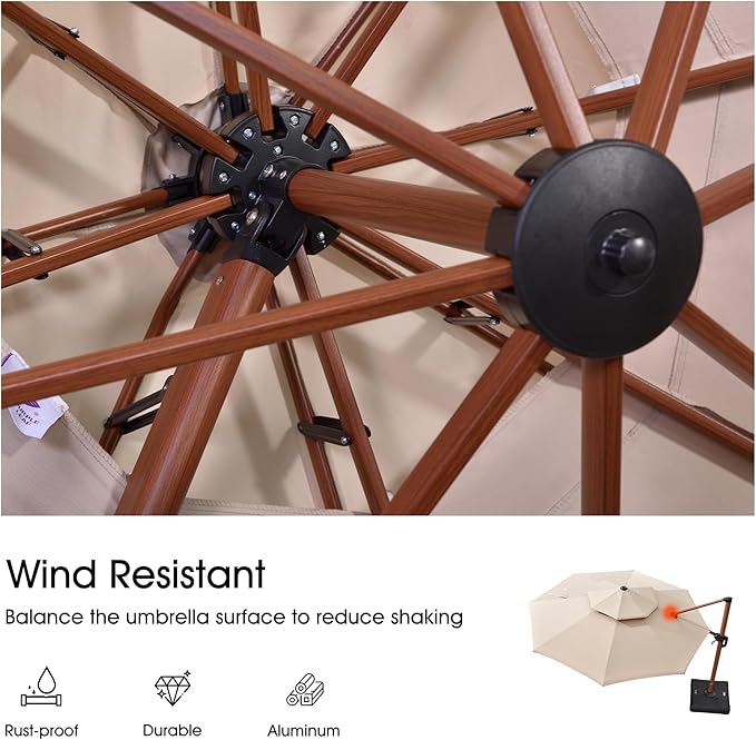 - Balanced wind design: Featuring a double-top design, the umbrella allows for ventilation underneath and can control wind direction to stabilize the canopy