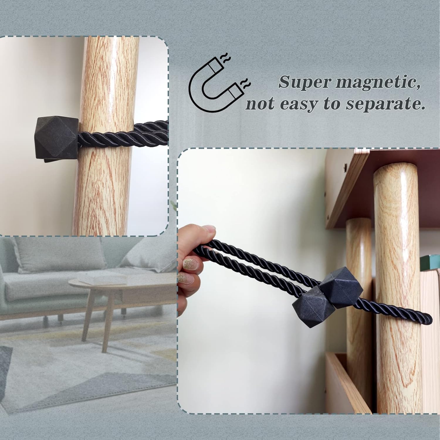 - [Upgrade Powerful Magnetic] Our magnetic curtain tiebacks magnets use high-end new imported nickel-plated magnets, with strong corrosion resistance and durability, more magnetic than ordinary magnetic curtain tiebacks, and do not rust and not lose color. The rope of curtain tie adopts upgrade thickened solid polyester yarn, which is not only durable, but also not easy to wear or pilling.