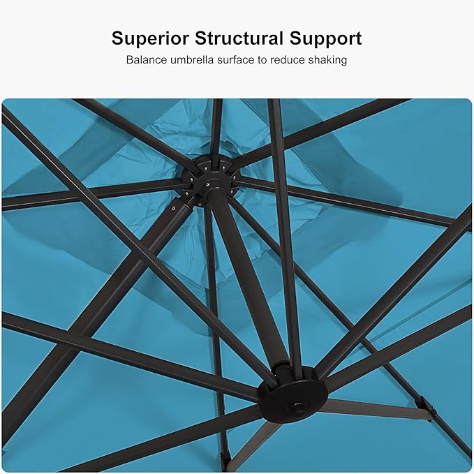 PURPLE LEAF 10' X 13' Patio Umbrella with Base Outdoor Cantilever Rectangle Offset Umbrella with 360-degree Rotation for Garden Deck Pool Patio Turquiose