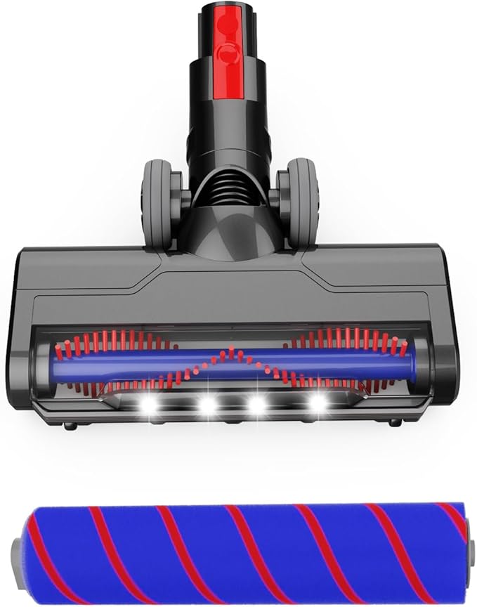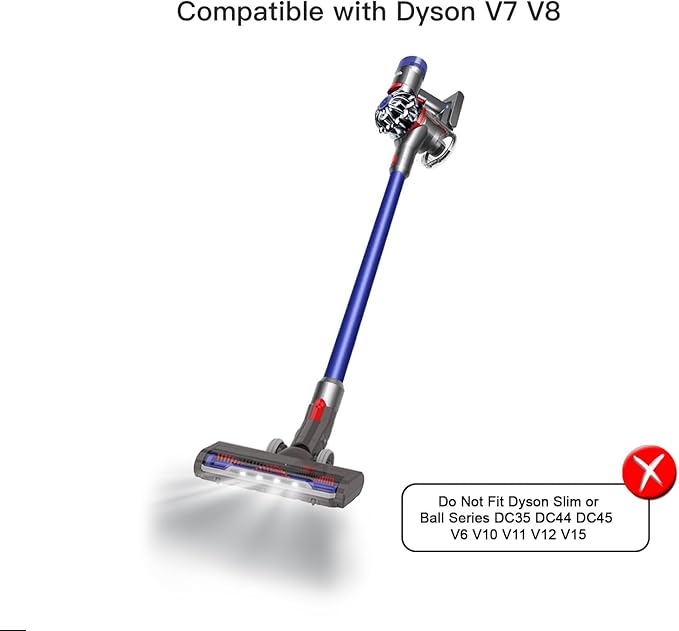 Updated Motorized Nozzle with Headlights for Dyson V7 V8 Vacuum Cleaners, Motorhead Brush Attachment for HardWood Floor or Carpet Cleaning,Replacement Soft Roller Head for Dyson V7 Series