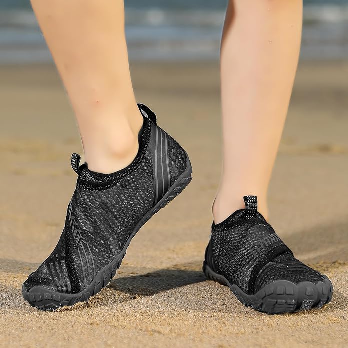 • Barefoot-Like Experience: These water shoes offer a soft and elastic feel, giving your kids the freedom to move and play comfortably. The toe design ensures a natural and barefoot-like experience, promoting healthy foot development.