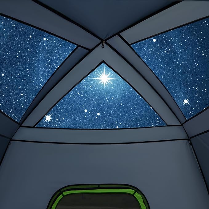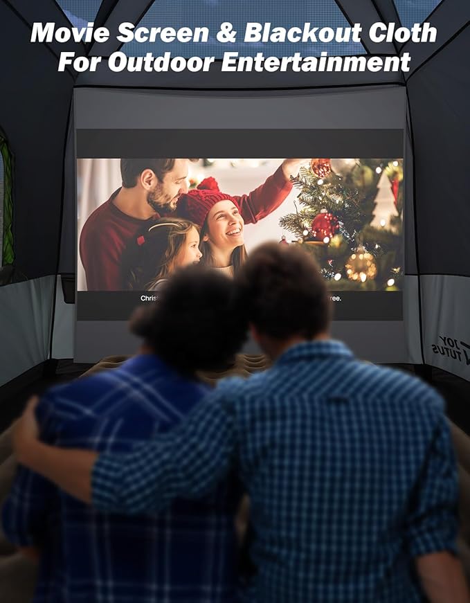 - [Blackout Cloth + Movie Screen]: The top of the tent is equipped with a mesh starry sky top. It can be used to watch the stars at night. Extra blackout cloth is equipped to enhance privacy. The blackout cloth can be used as a projection screen. You can spend movie night with your family at night. There are 2 storage bags inside and a power port at the door for easy charging