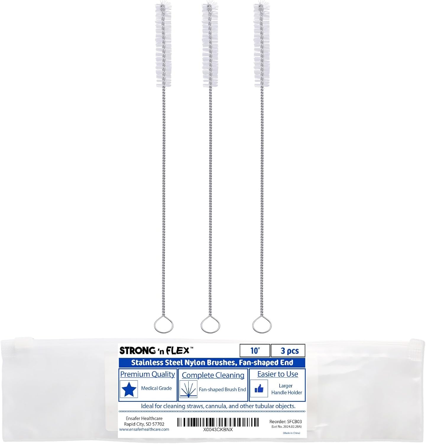 - EFFECTIVE CLEANING FOR REUSABLE STRAWS: The Strong 'n Flex Nylon Straw Cleaner Brushes feature a fan-shaped end, making it easy to clean metal, plastic, and stainless steel straws thoroughly. Ideal for reusable straws, these brushes ensure every corner is scrubbed clean.