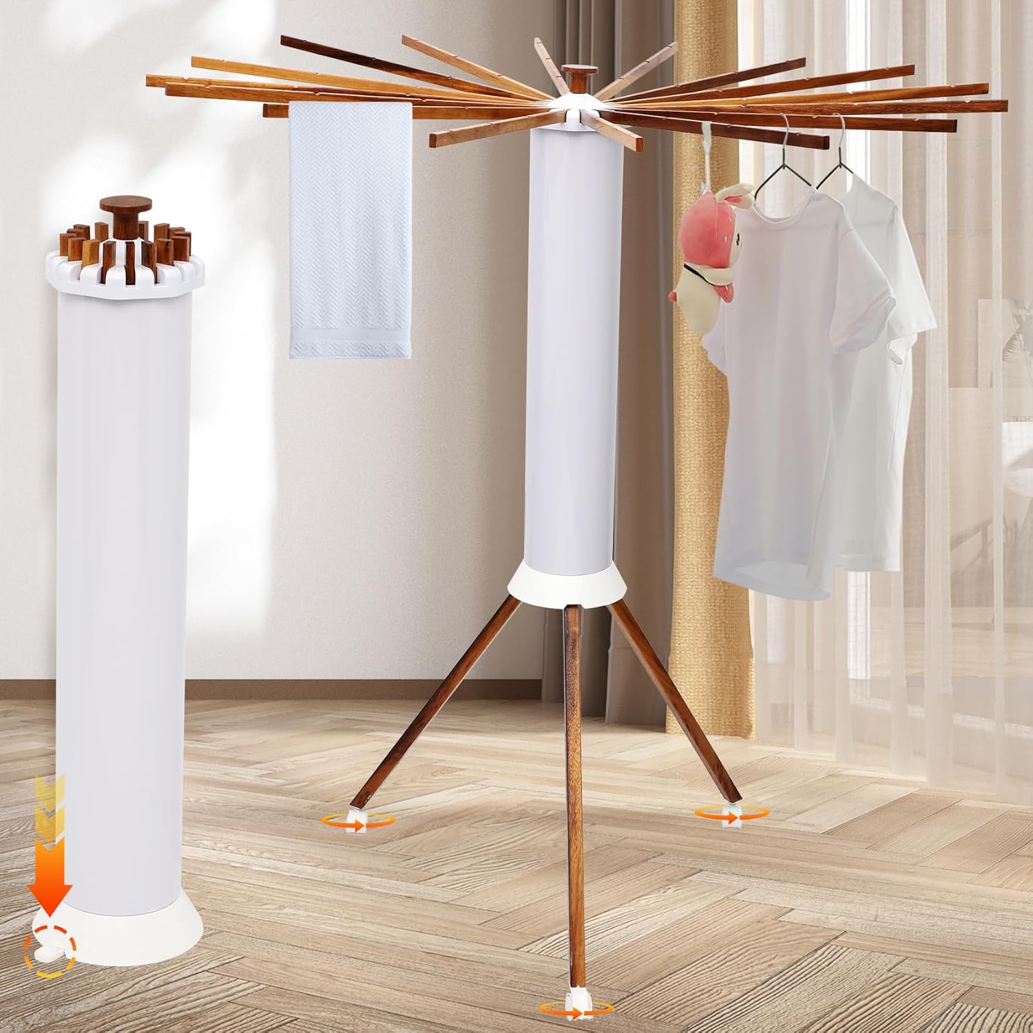 - Space-Saving & Tool-Free Assembly Quick fold/unfold design saves 90% storage space β ideal for small apartments or homes without dryers Patented tripod structure ensures stability in tight spaces (holds up to 45 lbs / 20 kg) Expandable arms (16 rods included + 2 spare rods) adapt to different drying needs