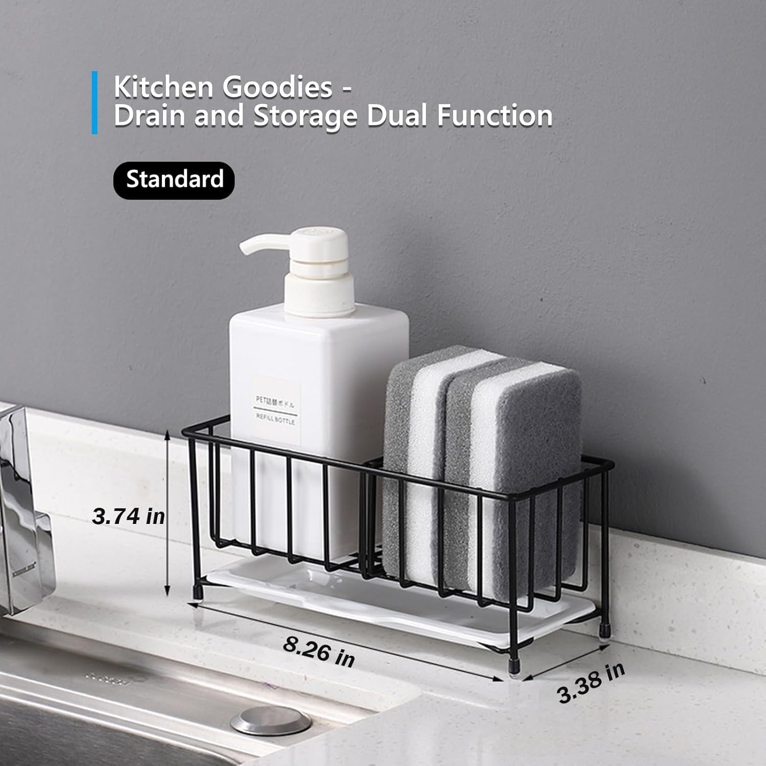 - 【Size & Capacity】The kitchen sink caddy is perfect for kitchens with limited space, it measures only 8.5"*3.4"*3.5" and can hold detergent bottles, sponge brushes, sink plugs, vegetable peelers. Kvaciva kitchen sink caddy, save more countertop space.